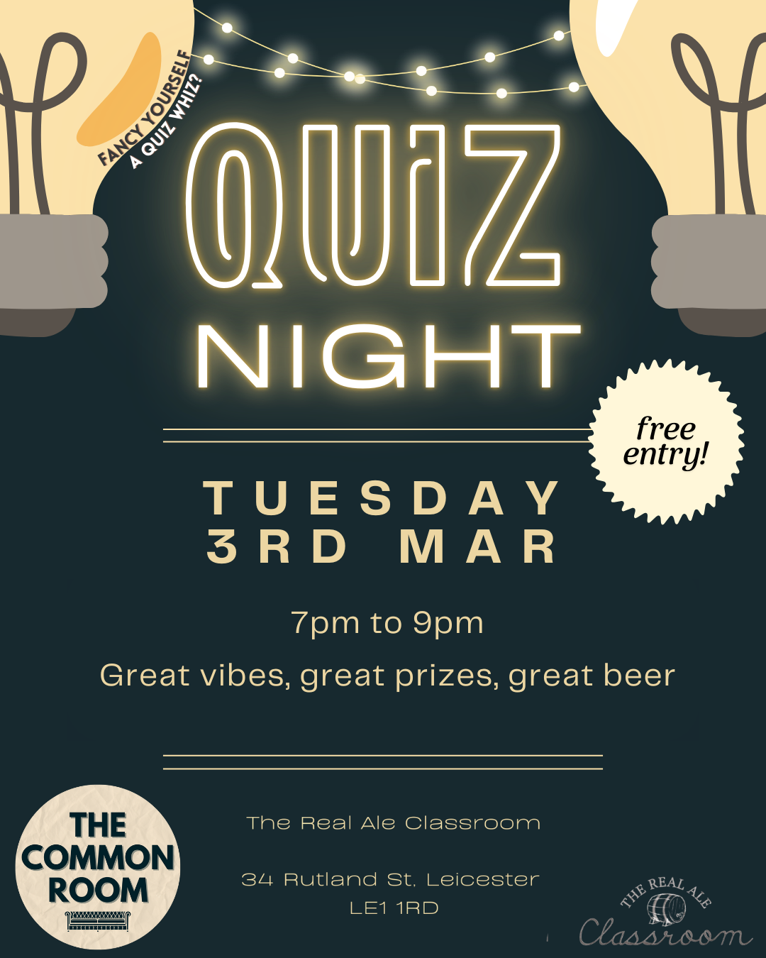 Rally your smartest friends on Tuesday 3rd and head down to the Cultural Quarter for a chance to win prizes and bragging rights. Entry is free and the beer is great - with a different themed round each month too to keep you on your toes