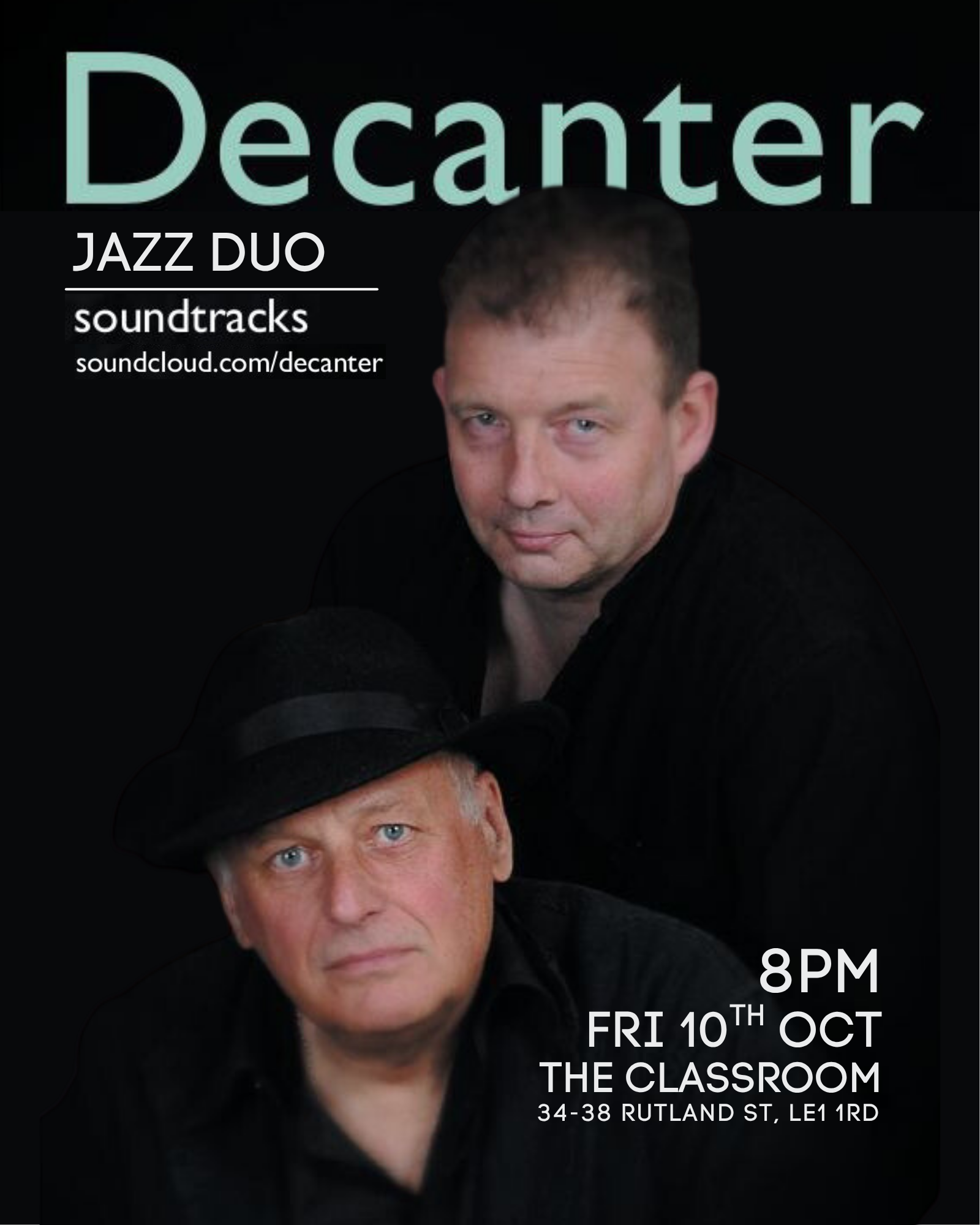 DECANTER | Fri 10th Oct October 26 Jul Written By Steven Tabbernor DECANTER are back in the Classroom!Join us on Friday 10th at the Rutland Street pub for live renditions of jazz classics and let this duo croon you into the weekend8PMFREE ENTRY JazzLive MusicLeicesterThe Common Room Steven Tabbernor